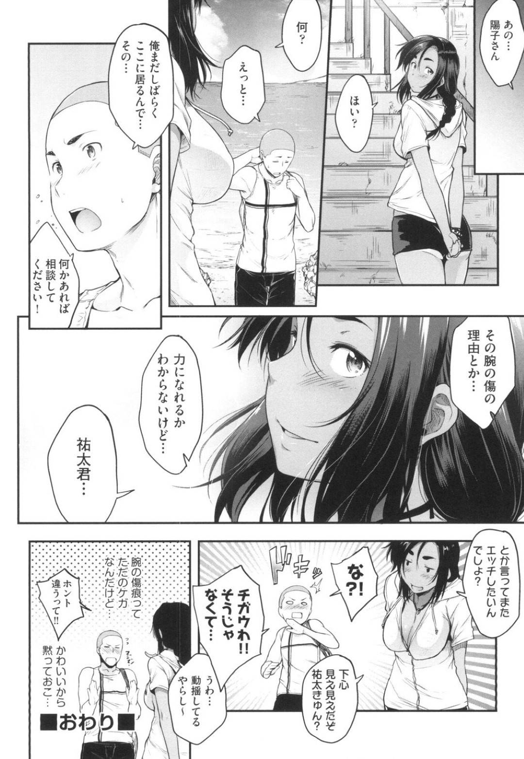- >【エロ漫画】自殺寸前のような発言する青年を引き止めるお姉さん。悩みを聞いてあげると青年の悩みは童貞でおっぱいを揉みたいだったw自殺させないためにおっぱいを触るのを許すお姉さんだったが、童貞青年の欲望はエスカレートしていき・・・