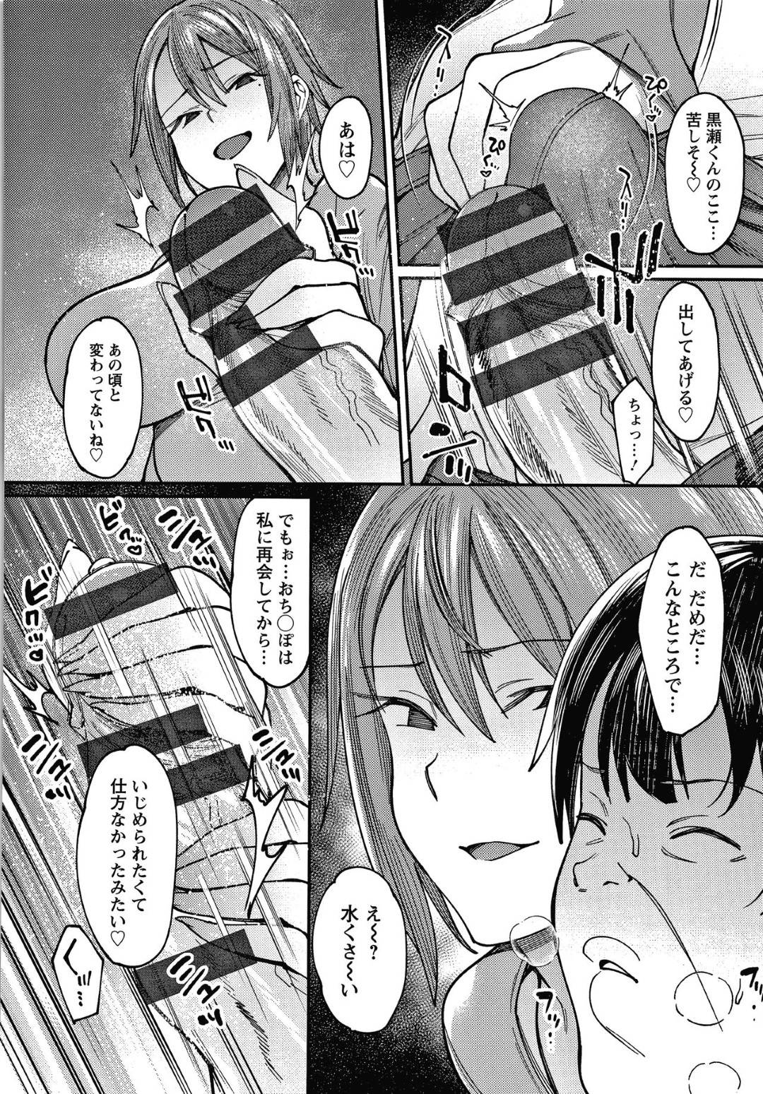 - >【エロ漫画】同窓会で昔いじめていたキモデブ男子と再会したドSお姉さんは、逆レイプの連続セックスで精液を搾り取る