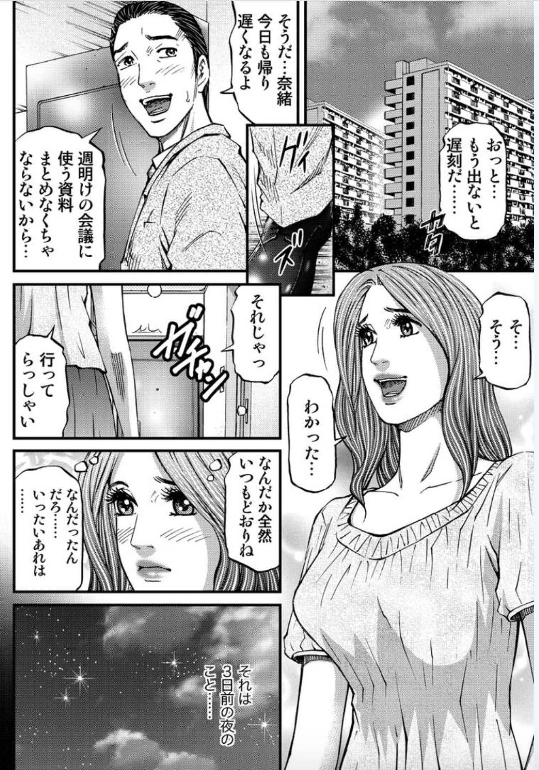 | 【3話】【エロ漫画】夫が人妻と寝ている間、人妻の旦那を家に招く妻は、誘惑からの生ハメ不倫中出しセックス |