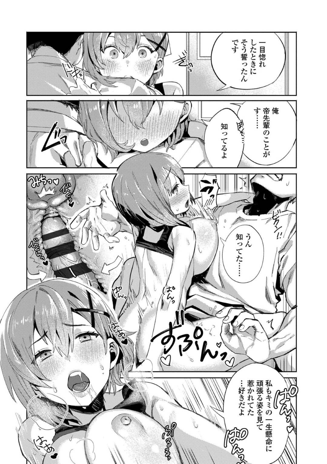 【エロ漫画】部室で後輩男子が下着オナニーするのを見つけた陸上部のエース女子は誘惑してパイズリからのイチャラブ生ハメセックス