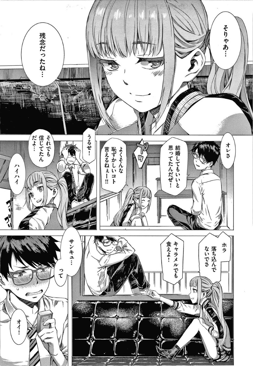 - >【エロ漫画】恋愛に悩む男友達を励ますためにキャラメル渡したつもりがコンドームを渡してしまうギャルJK。女も彼氏と最近うまく言ってないと分かれば、コンドームを付けてあげて一回限りのSEXで久々の快楽を感じる!