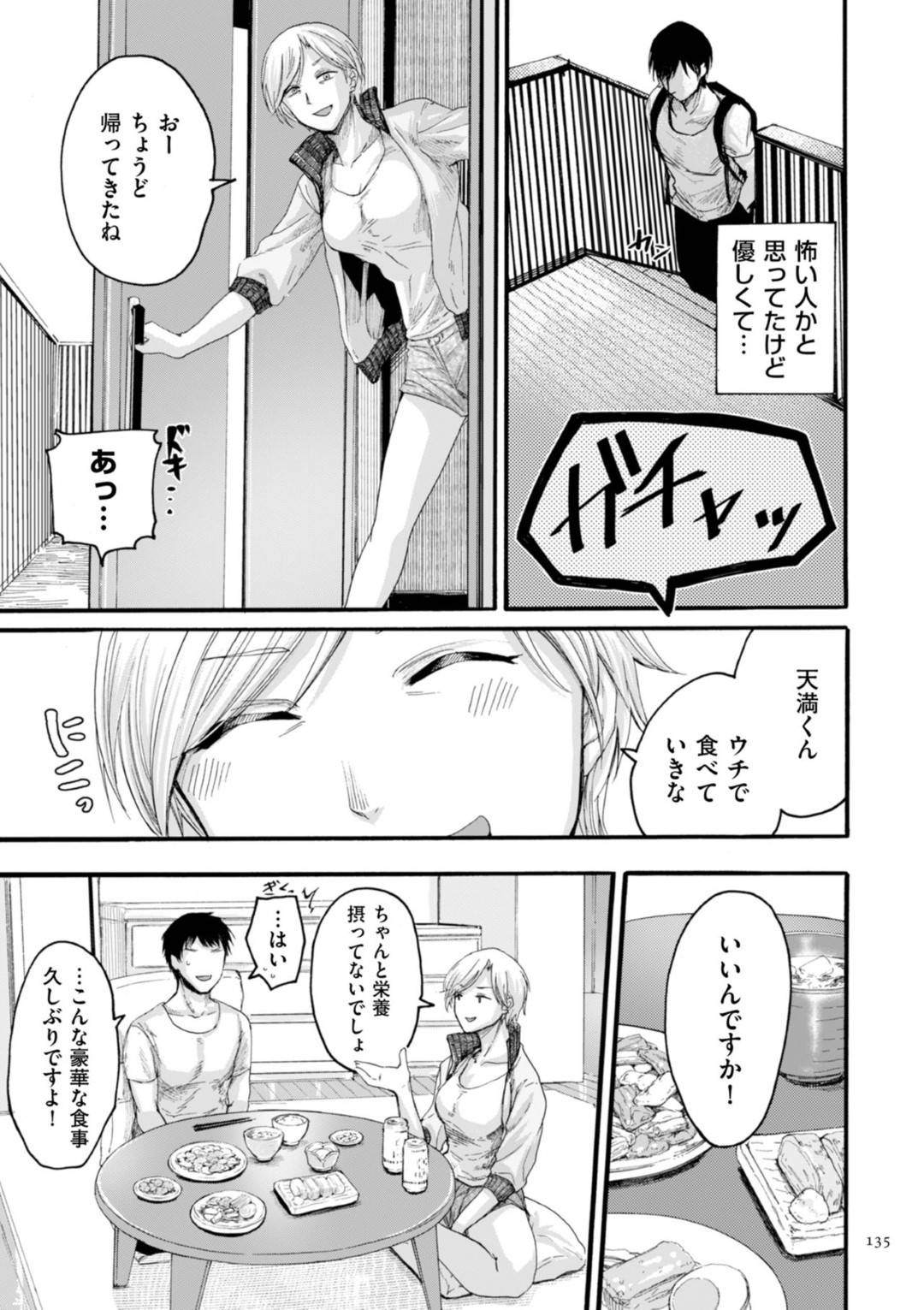 【エロ漫画】隣人の人妻ギャルに部屋へと招かれた青年。酒に酔ってエッチな雰囲気となった二人は勢いに任せてセックスしてしまう。