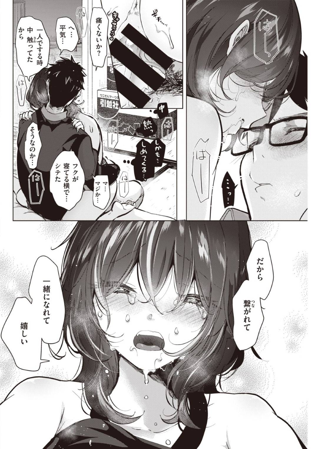 - >【エロ漫画】小学生からの付き合いで隣の男の引っ越しについてきた寡黙な不思議少女。男への好意を打ち明けるために、自らおっぱいポロリしてエッチにチンポを咥えこんで、側にいさせて欲しいとおねだりする甘いイチャラブSEX!