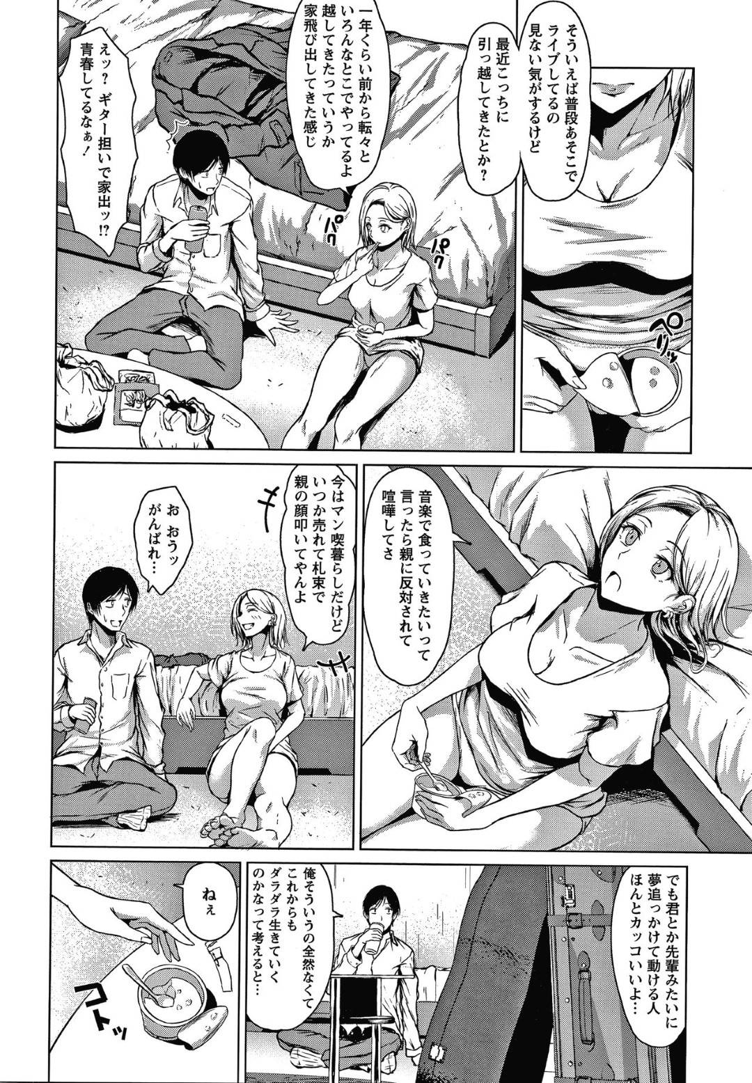 - >【エロ漫画】ひょんな事からギャラリーの男の家で泊まる事になったストリートシンガーのお姉さん。欲情的に男の事を誘う彼女はそのまま手マンやディープキスされて正常位でセックスへと発展。