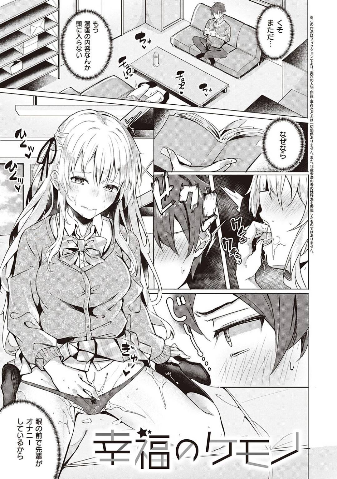 - >【エロ漫画】部室で漫画を読んでいる伊吹くんの眼の前では、憧れのさくら先輩がオナニーに夢中!彼女から手伝ってと頼まれて、制服を着たままの協力オナニーはエスカレートしていき、生ハメセックスしちゃう!
