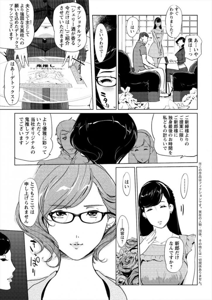 - >【エロ漫画】結婚式の裏プランで挙式前にCA、秘書、医者、弁護士、プランナーと高キャリア女性とのハーレムSEX!