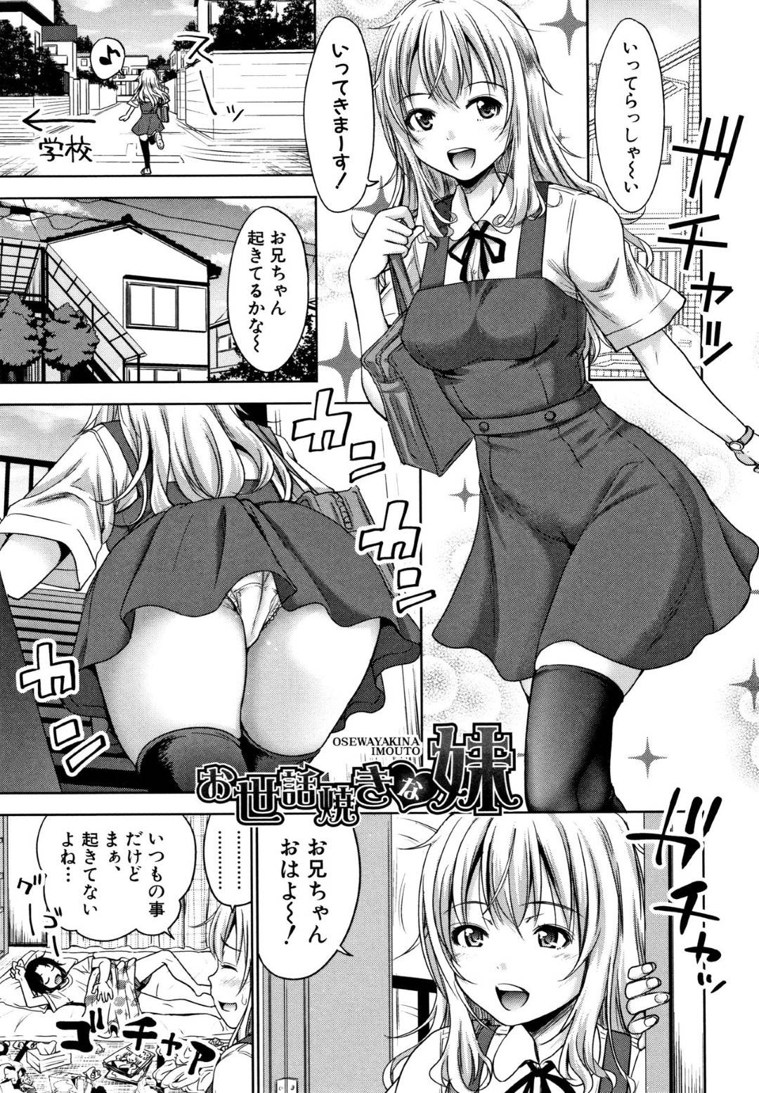 - >【エロ漫画】寝坊しがちなお兄ちゃんを起こしに来る妹。反り立つチンコを見て、性欲溜まって犯罪しないようにとフェラチオご奉仕から近親相姦セックス始めてしまう!