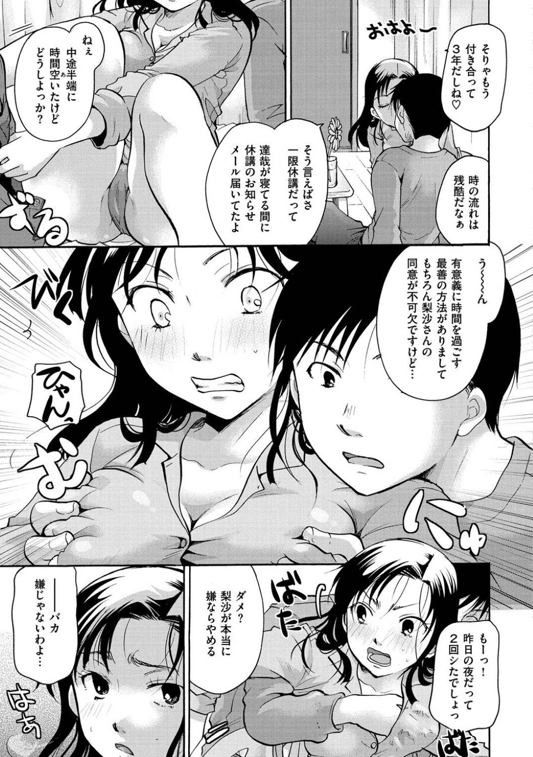 【エロ漫画】彼氏にセックスを求められたツンデレ清楚系お姉さん。ツンツンしながらもまんざらじゃない彼女は彼のディープキスを受け入れ、乳首責めや手マンなどを受けていちゃラブセックスへと発展する。