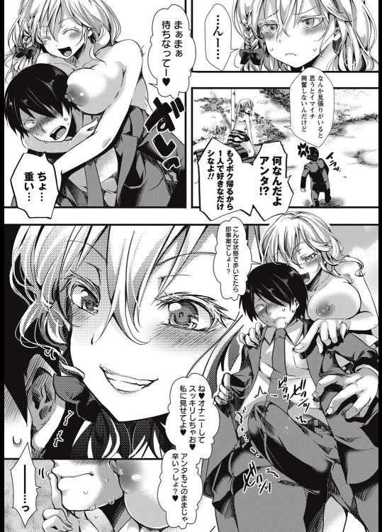 - >【エロ漫画】露出オナニーが趣味の巨乳ギャルJKのオナ現場を見た男子が公園で見張りをし掃除用具入れでセックス!