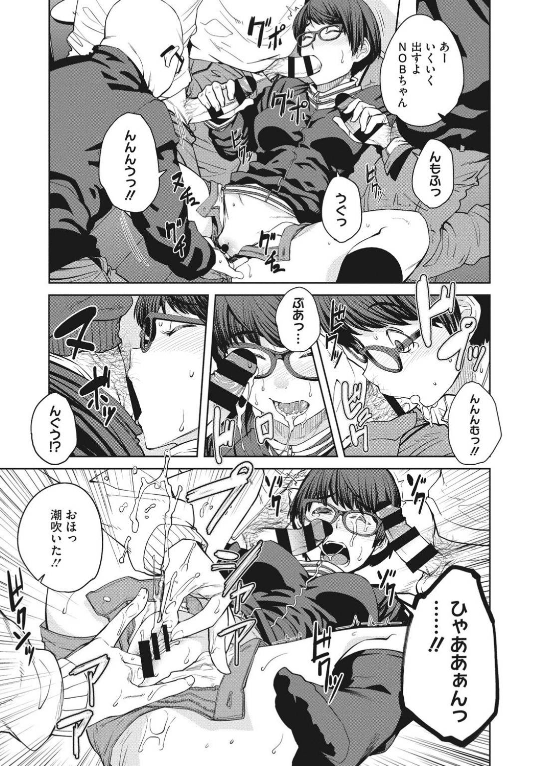 - >【エロ漫画】モテないクラスタのオフ会に参加して自虐を言って落ち込んだらおじさんたちにセクハラされながら慰められた非モテメガネ女子。ちんぽを何本もしゃぶって乱交しまくり連続生ハメ中出しセックスしてビッチに目覚める!
