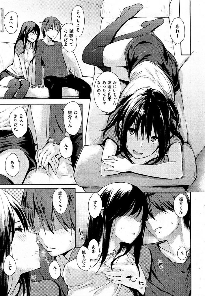 - >【エロ漫画】お互い一人っ子だった男女が再婚で兄妹になり恋愛感情が生まれ両親に隠れて声を押し殺してSEX!
