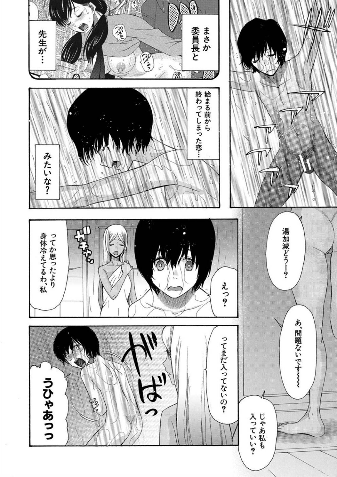 【エロ漫画】転校してきた金髪黒ギャルJK…憧れのマドンナと先生が生ハメしてるのを主人公と目撃してしまい、一緒に家に逃げお風呂に入り、興奮してイチャイチャ生ハメ中出しセックス!