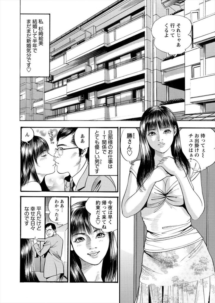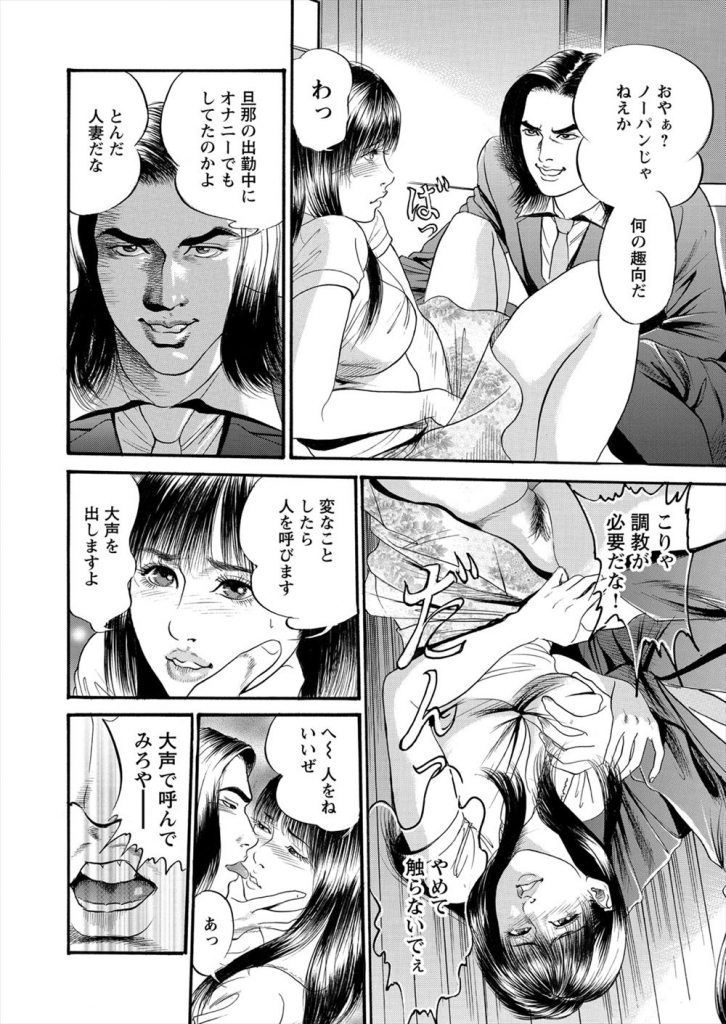 【エロ漫画】夫の淡白なエッチで物足りず自慰にふける美人妻だが偶然営業に来た元彼に凌辱され性奴隷堕ち!