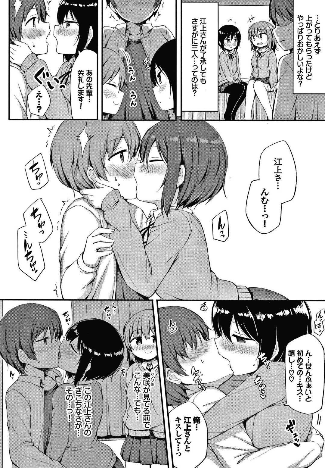 - >【エロ漫画】初エッチしてから淫乱になってしまった巨乳彼女…後輩も交えて3Pしたいと言い、イチャイチャ生ハメ中出し3Pセックスする!