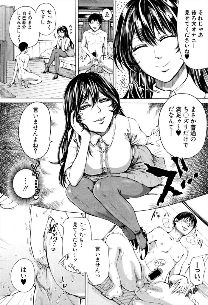 ホテルでセンズリ鑑賞してもらう童貞男だがサドのお姉さんは服を脱ぎペニバンつけて本気モード!ハイヒール舐めて四つん這いになりペニバンをおねだりするM男!アナルにペニバン突っ込まれながら女王様のべちゃマンに童貞変態チンポ入れさせてもらい逆レイプで射精するマゾ犬!