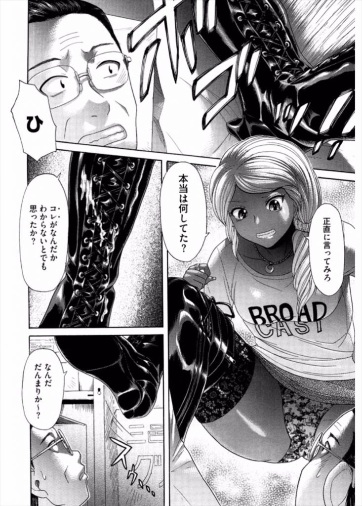 - >【エロ漫画】スーパー店長のオジサンがバイトの金髪黒ギャルのロングブーツの臭いを嗅ぎながらセンズリしていると…