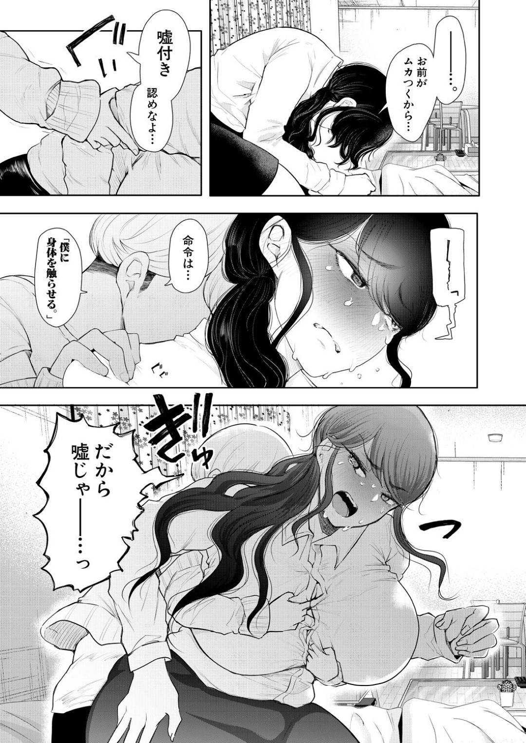 - >残業帰りに公園でやさぐれていたら、近所のヤリチンショタ男子と一緒に帰ることになった社畜OL…勝手に家に上がり込んだ男子に襲われて無理やり手マンでイカされてしまい、激しいおねショタ調教ファックで処女喪失