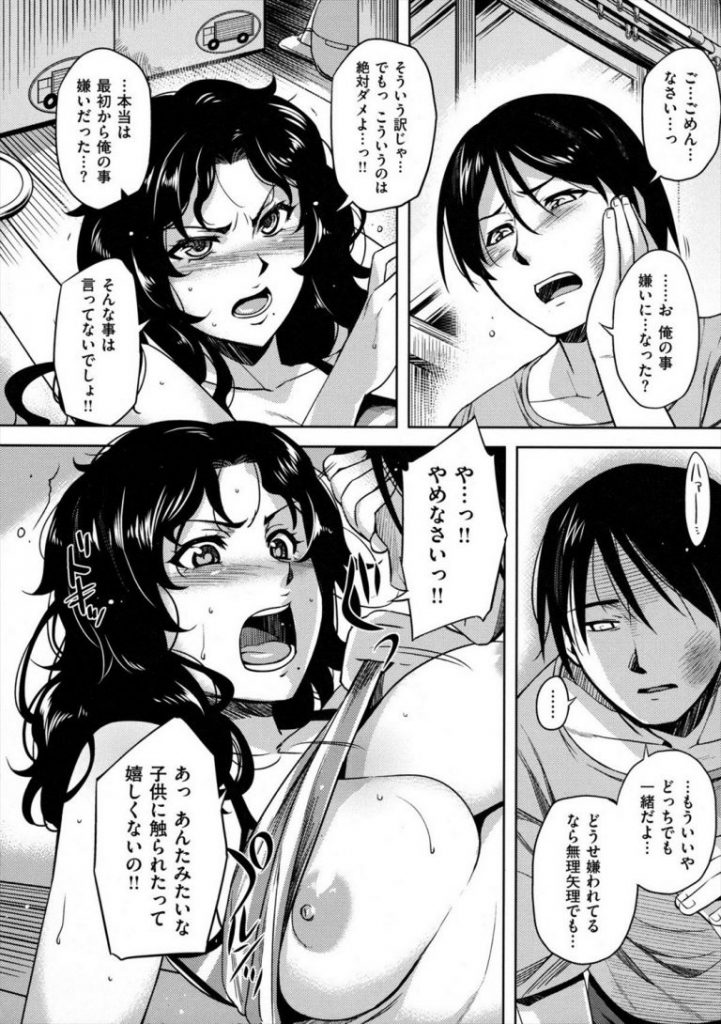 - >【エロ漫画】幼い頃から好きだったバツイチの叔母に無理やり襲い掛かり強引に愛撫して感じさせ生ハメ中だしする甥っ子!