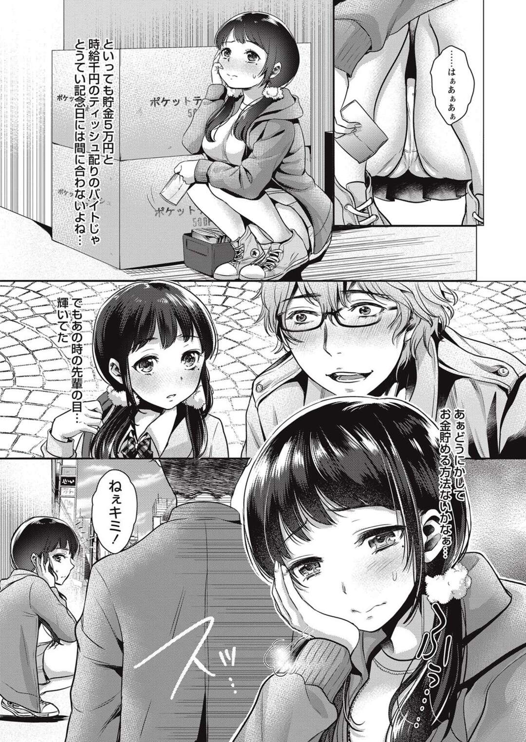 - >記念日に先輩にプレゼントするために怪しい高額アルバイトを始める巨乳JK。薬を飲まされて快楽になってしまった彼女はキモオヤジとフェラをして生ハメで中出しセックスをしてしまう