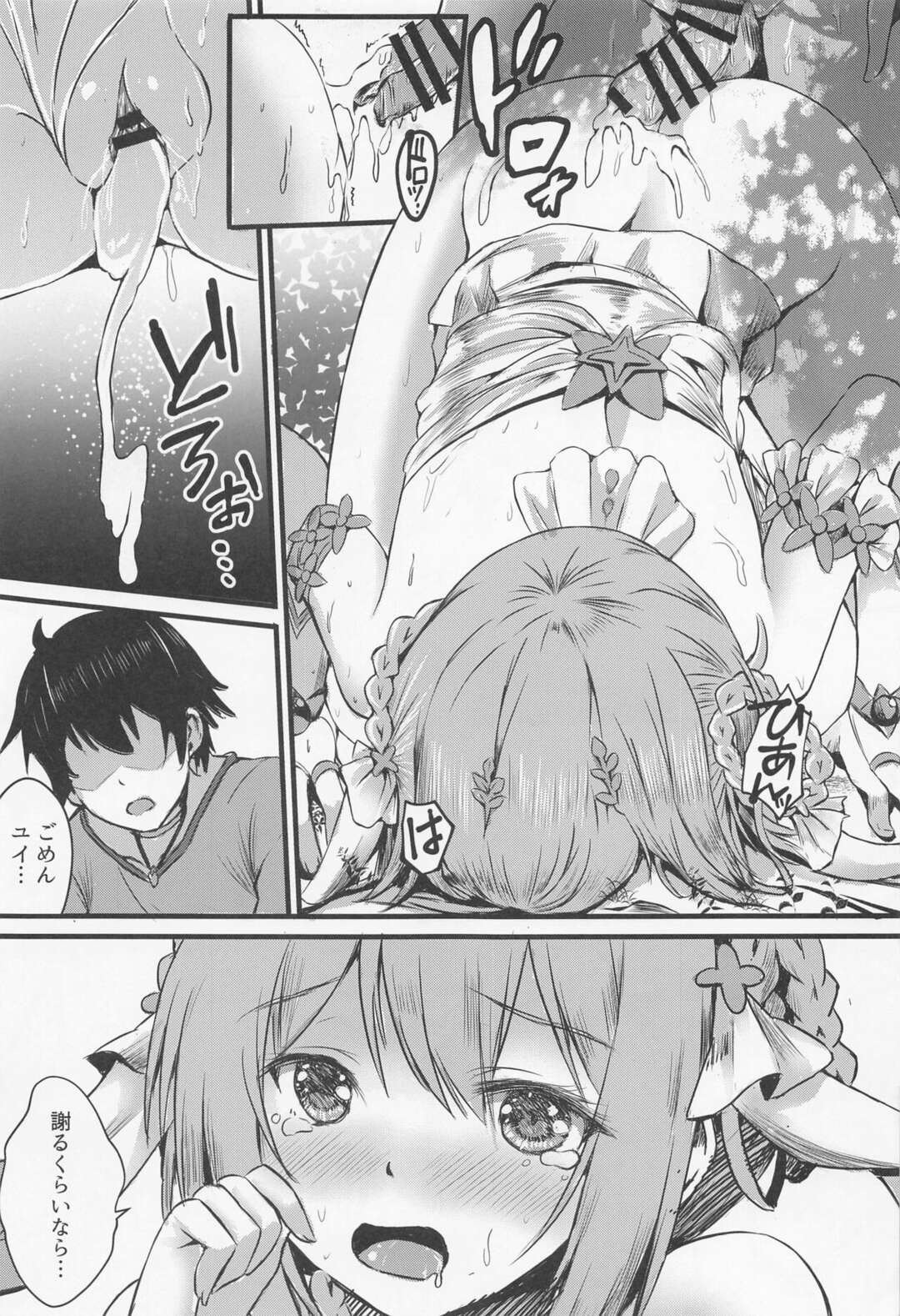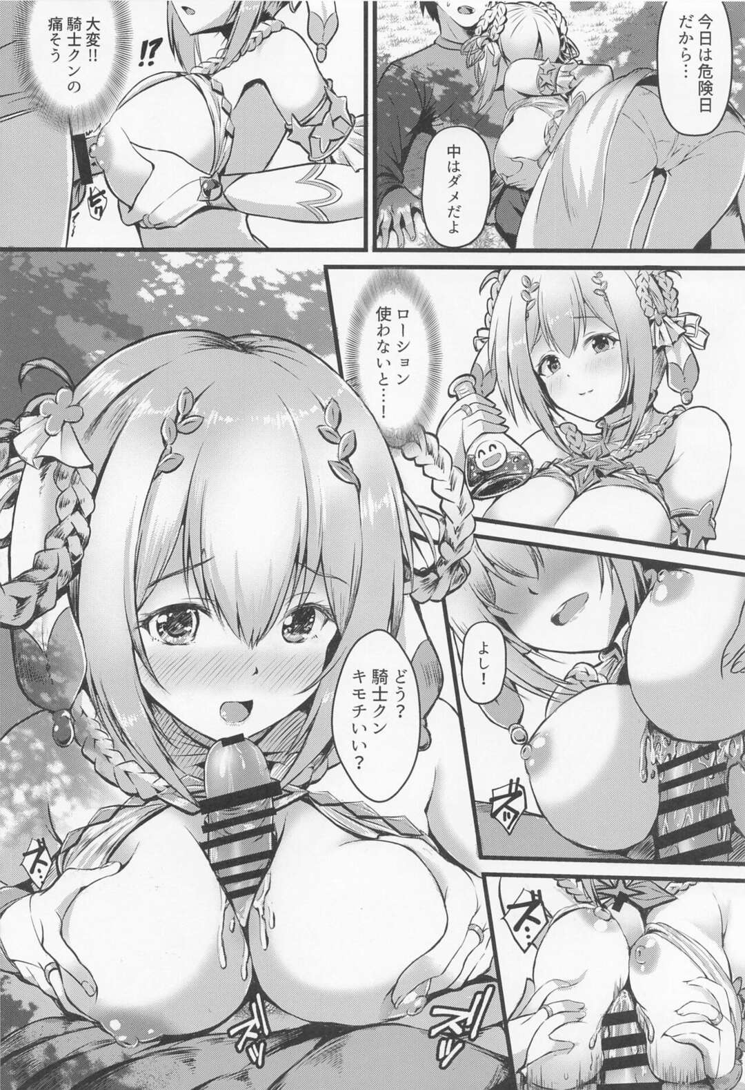 - >みんなでリゾート地に遊びに来たペコリーヌ…こっそりオナニーをしている青年を見つけて性処理してあげる!