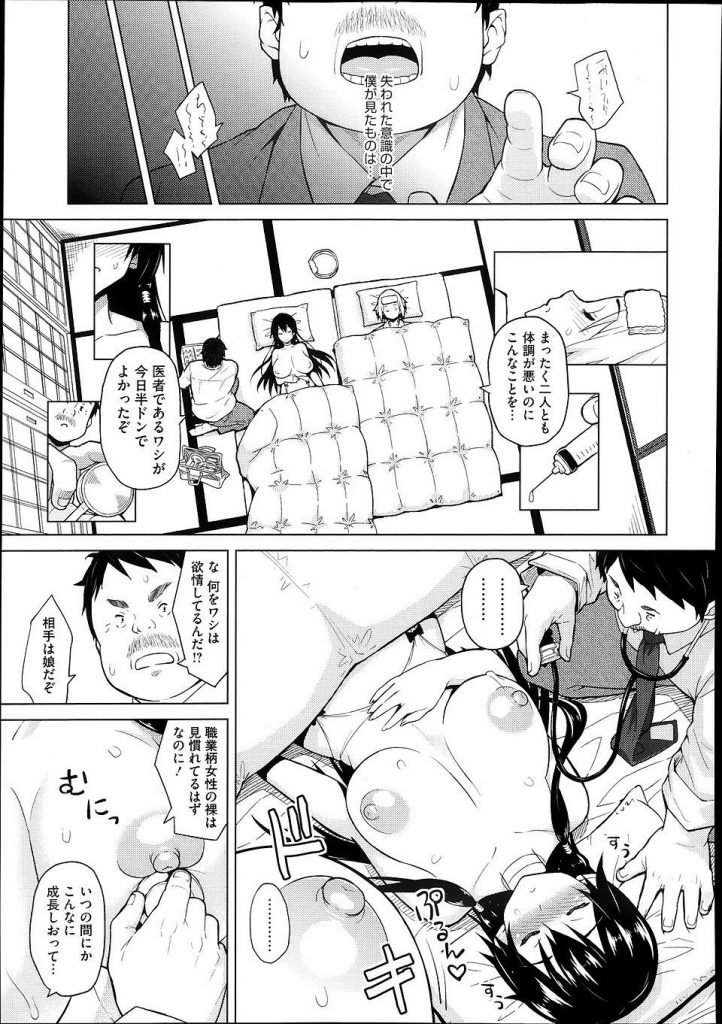 血の繋がりのない姉弟は今日もナースのコスプレエッチで楽しんでるが弟からの告白を受けて恋人に!トイレで飲尿してくれる姉に感動し熱があるにも関わらずセックス!気絶した子供たちを見つけたお父さんは診察しながら欲情し娘マンコに挿入近親相姦中だし!