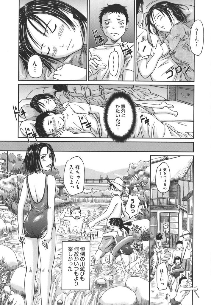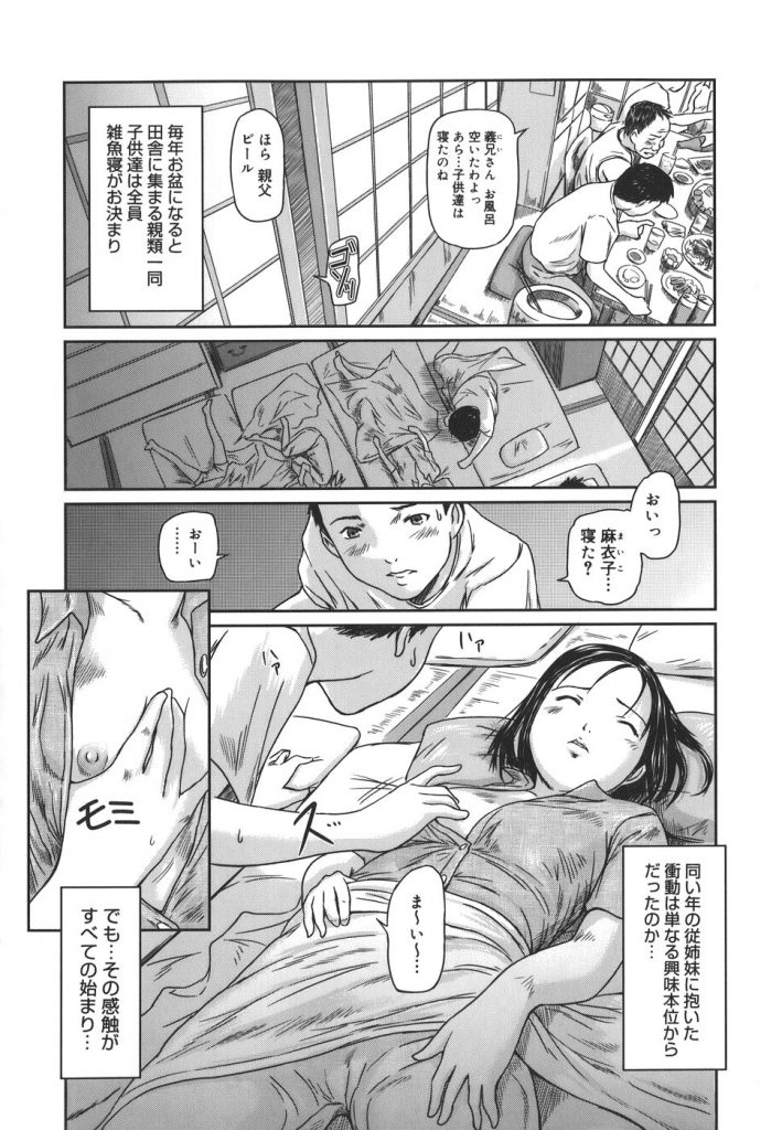 - >【エロ漫画】お盆に中学生の従姉妹と初体験してから毎年成長した体に興奮してセックスし人妻になっても続く関係!