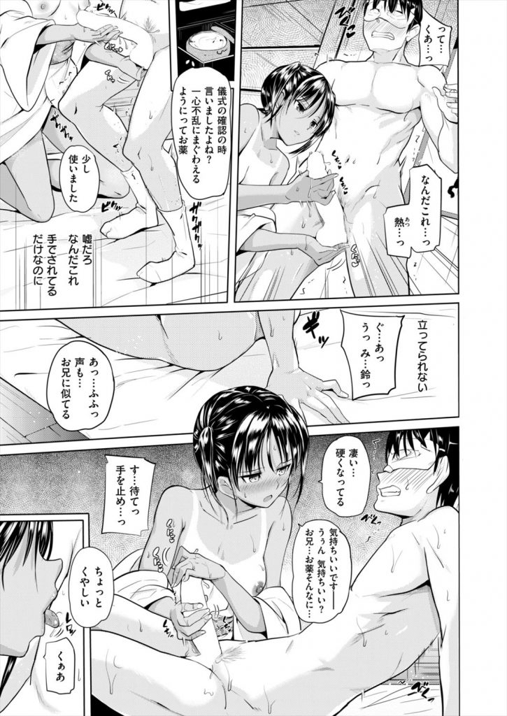 【エロ漫画】村のお祭りで男と一晩中交わる儀式に参加する妹の貞操を守ろうと参加した兄が勢いのまま近親交尾!