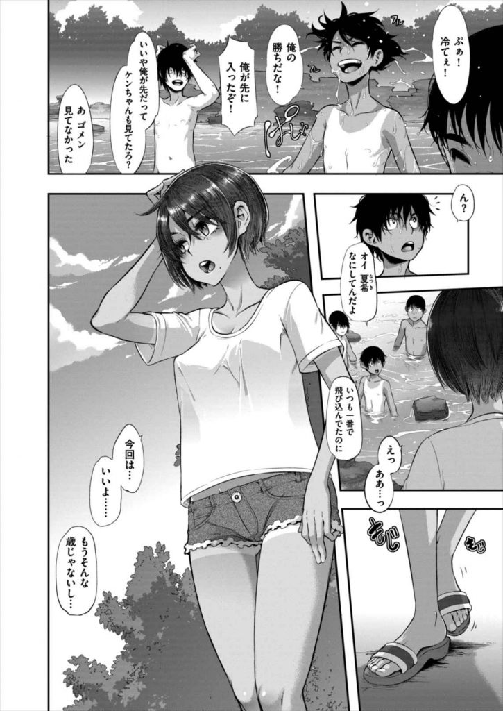 - >【エロ漫画】田舎で水遊びする少女が生えだした下の毛を見せると興奮した少年達に次々犯され中出しでイキ続ける!