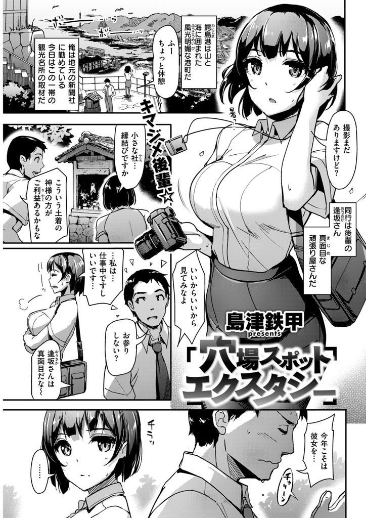 - >【エロ漫画】キマジメ女子が先輩男と取材に来て仕事終わりに酒を飲みカーセックスではしたなく腰を振り激しくエクスタシー!