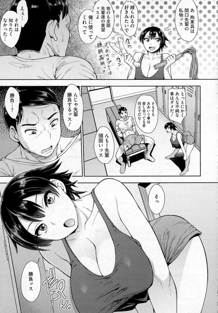 - >【エロ漫画】元気で活発な陸上部JKが部室で部員にフェラしてるのを見た真面目部長が逆拘束され言葉責めで愛の無い生ハメSEX!