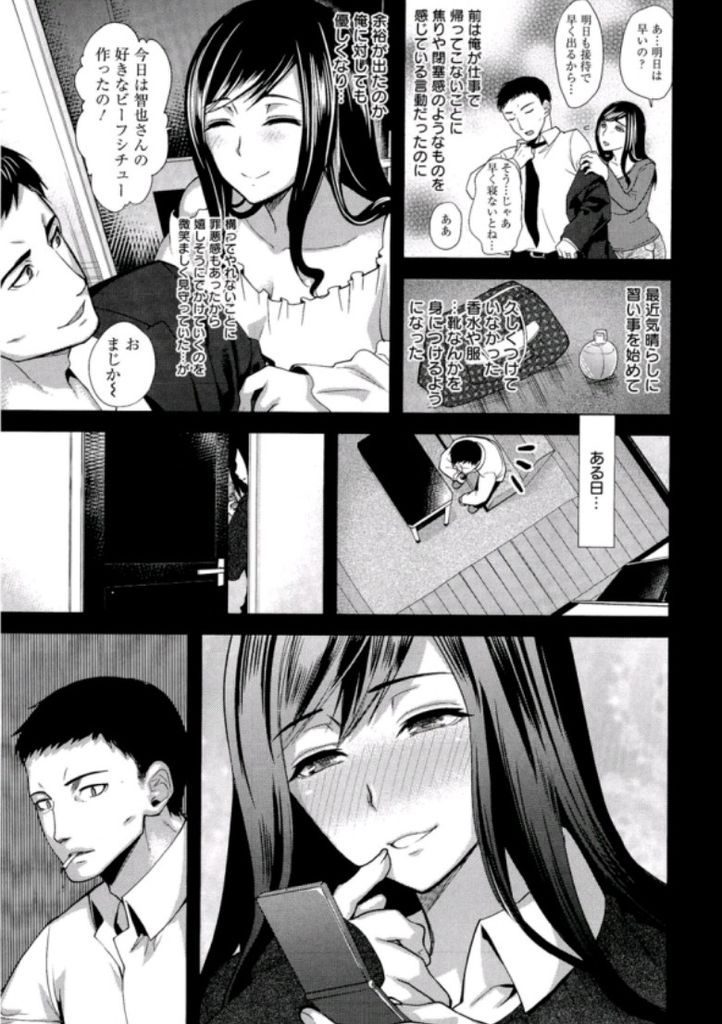 【エロ漫画】若い男と浮気する妻を尾行する旦那が公衆便所で肉便器になり見知らぬ男達の精液を浴びる淫乱な妻の姿にフルボッキ!