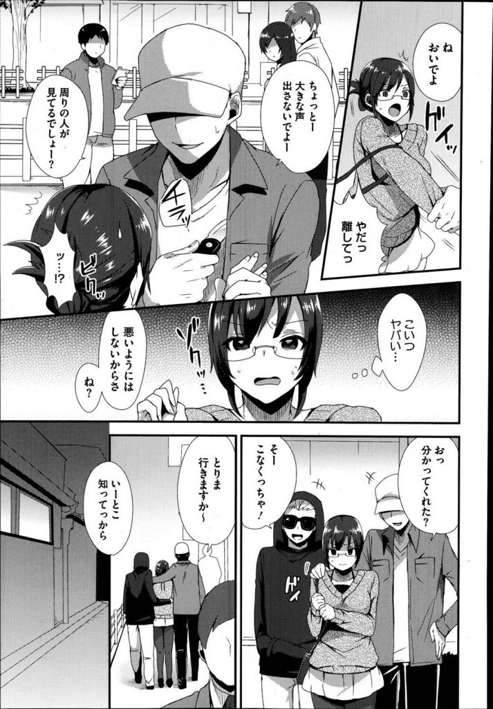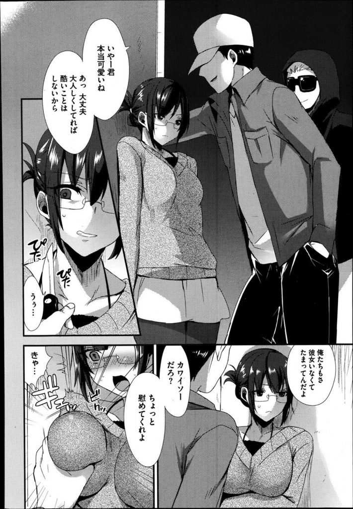 - >【エロ漫画】眼鏡JKがナイフで脅され人気のない路地裏で黒タイツを破かれ串刺し3Pレイプされると淫乱な本性晒してマジイキ!