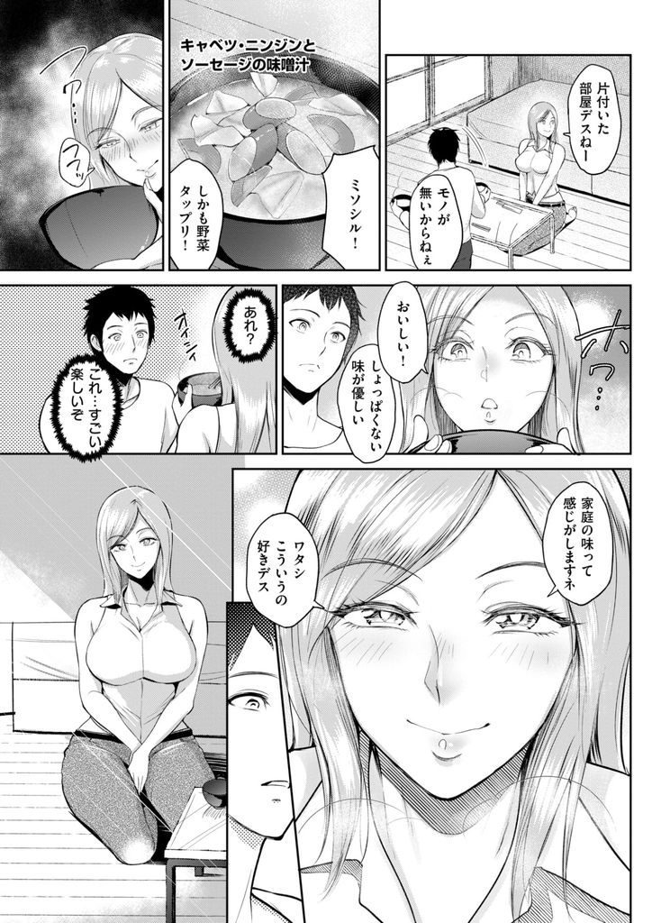 【エロ漫画】お隣に住むロシア人留学生の東欧美女にお裾分けを頂いた男が金髪マンコを舐めて外人ボディを獣の様に貪る!