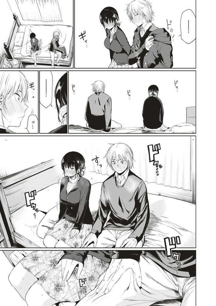 【エロ漫画】両想いを確認してのテコキから誰も家に居ない日に約束して初めて同士の高校生二人がドキドキ初体験!