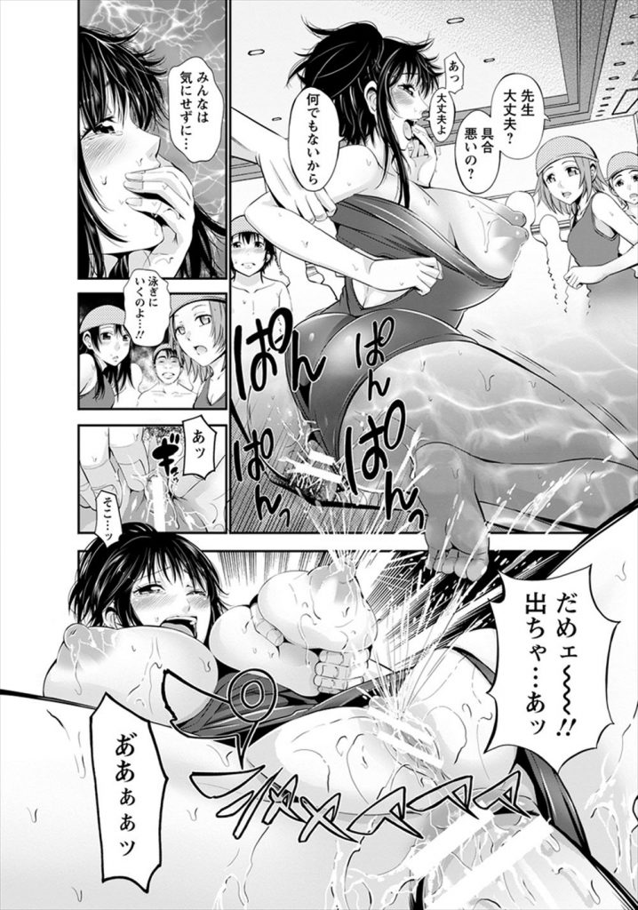 【エロマンガ】スイミングスクールの巨乳先生のパンティでオナニーしてたショタが見つかり顔射!